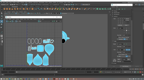 Next was to texture the Wisp. I simply went in with a matte plastic texture in a cyan shade, and began painting the body. The eyes were the same material - just in black. I added white detailing to match the initial design, then attempted to add glow effects. This proved impossible despite me following the tutorials I had been watching step for step, so I decided to leave that part for Dan to doalong with the rigging he had said he would do.