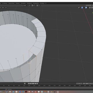 The candlestick took a couple of attempts to model. The actual holder of the candle was easy to model, which I did so in Maya: just a flattened torus for the rim, a booleaned cylinder for the main portion, and another flattened torus for the bottom - with another torus for the handle. I used the multi-cut tool to cinch in the middle of the main portion of the holder, then selected the outer ring vertices of the rim torus so to droop it down slightly. The next portion to model was the candle itself, so rendered the holder as an FBX and imported it into Blender - since I find the sculpting tools easier to grasp there. I used a standard cylinder mesh and scaled it to be taller. I used the multi-cut tool to cinch/expand different areas to create an asymmetrical effect. I then used it on the top face to cut out a circle, so to move it down in an attempt to create the dip in the candle. This was an unnecessarily complicated way of doing suuch a task, and again - like with the Wisp - it lead to me being unable to smooth the model in sculpt mode. I started with a fresh cylinder and did the same cinching/expanding process, (this time with the proportional editing tool) before taking it straight into sculpt mode. Using the inflate brush, I was able to create realistic wax drips and dips. All that was left to model after this was the wick at the top, which was just another cylinder warped with the proportional editing tool, and obviously scaled down.