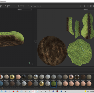 Next was texturing the grass base I was putting Pukani on. I simply used two SBSARs - a dirt one and a grass one. I turned off the height settings, before painting on the grass texture. I did the same for the dirt one, then, to cause a nice gradient: I lowered the opacity and increased the flow to 100 of the grass texture, before using it to blend the grass/dirt a little more together. I'm super pleased with the outcome - simple, but just what I was needing.